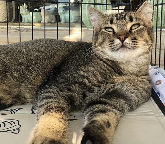 Zinnia - 13 year old tiger stripe cat, fixed. Zinnia has been a mostly indoor cat for 5 years now. She much prefers to be outdoors, though - an indoor/outdoor situation would be most ideal, especially considering her age.